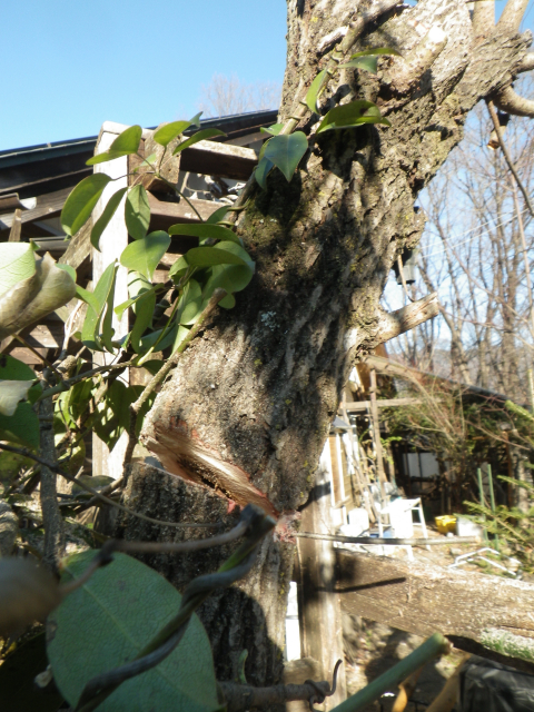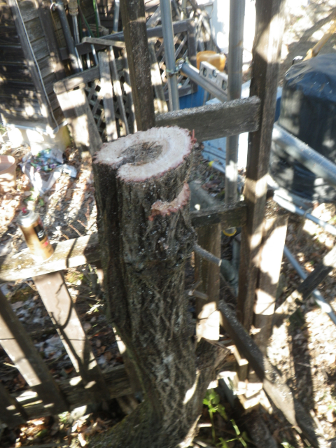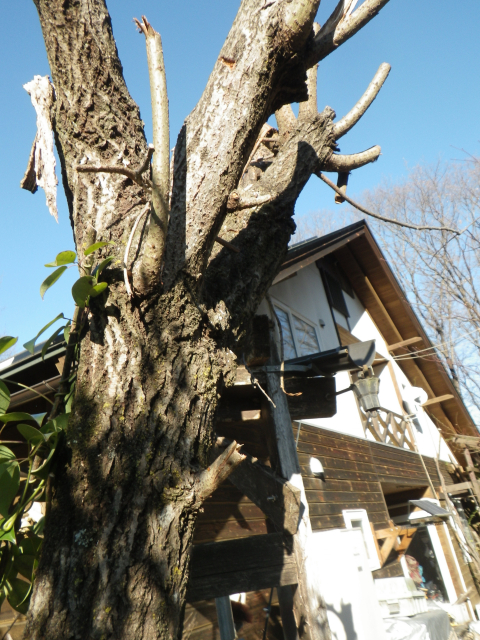 家が建った時からあった木で、そこそこ大事にしてたけど、西側の倉庫脇に数年前に生えて大きくなったので、