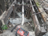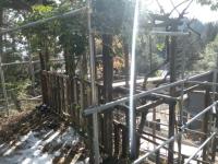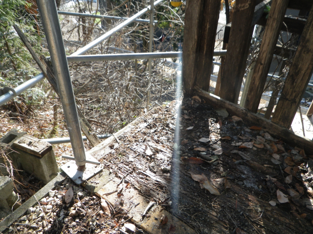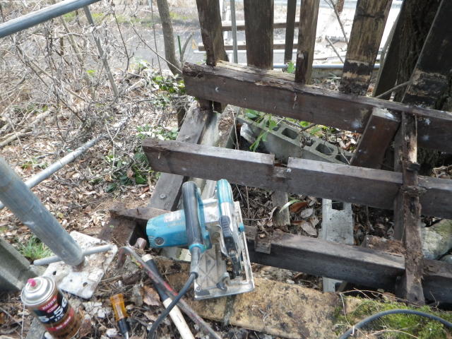 桃パーゴラ最上段の腐ったデッキの解体の続き