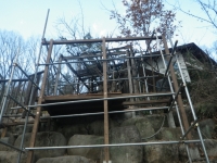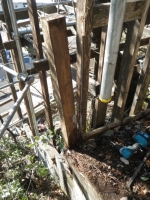 まずは新パーゴラ屋根最上部となる大屋根と接続する部分の柱の位置決め