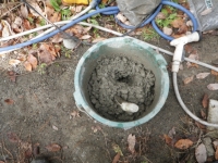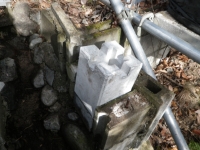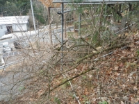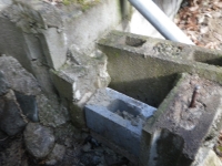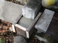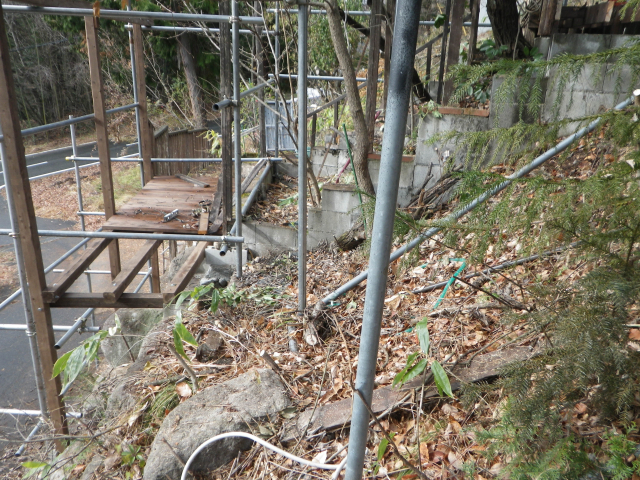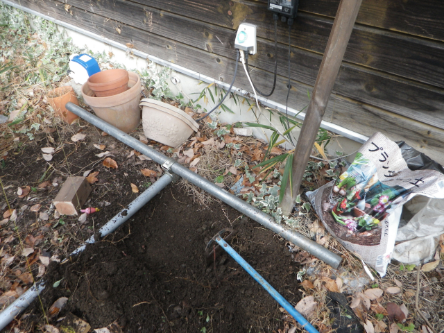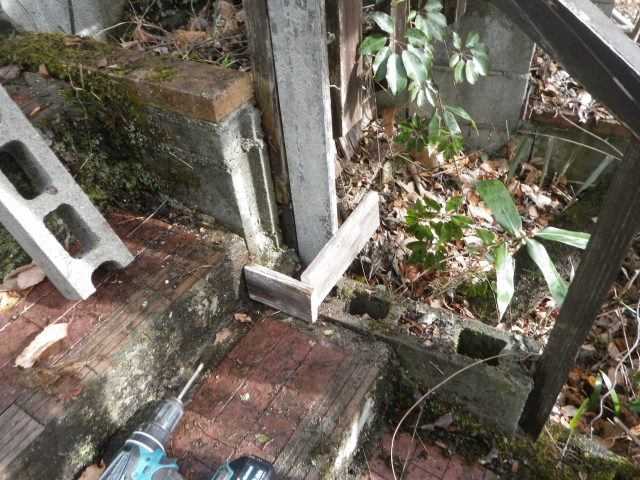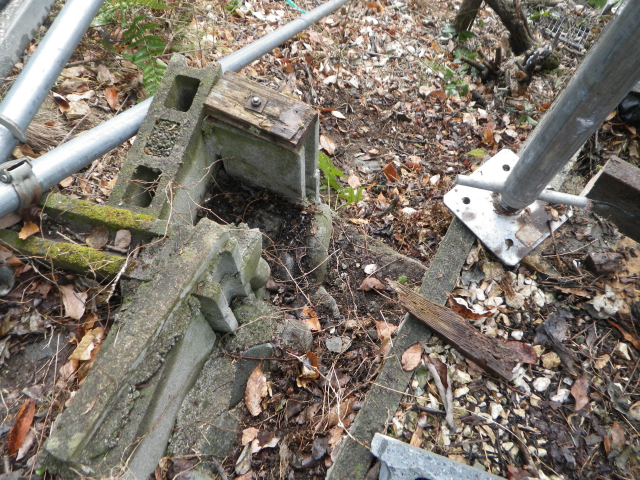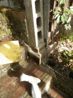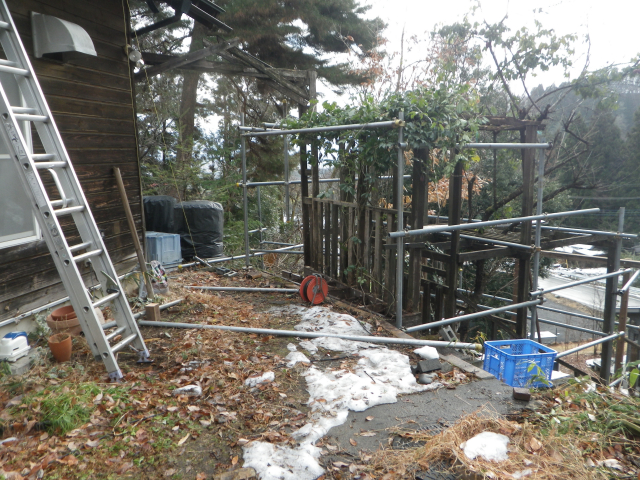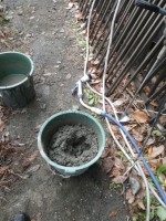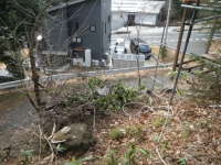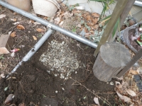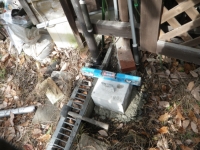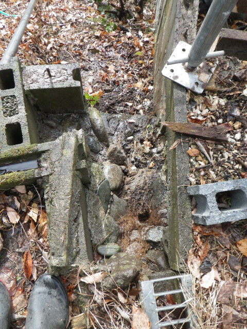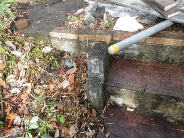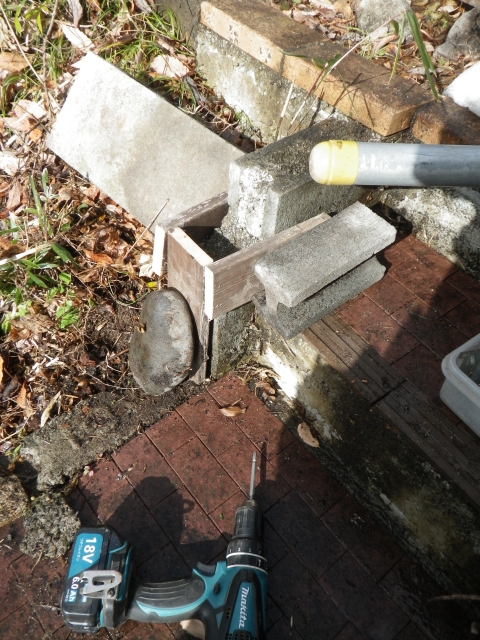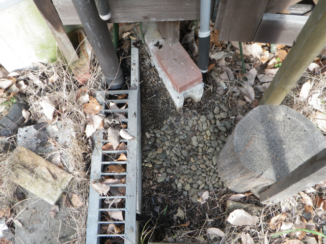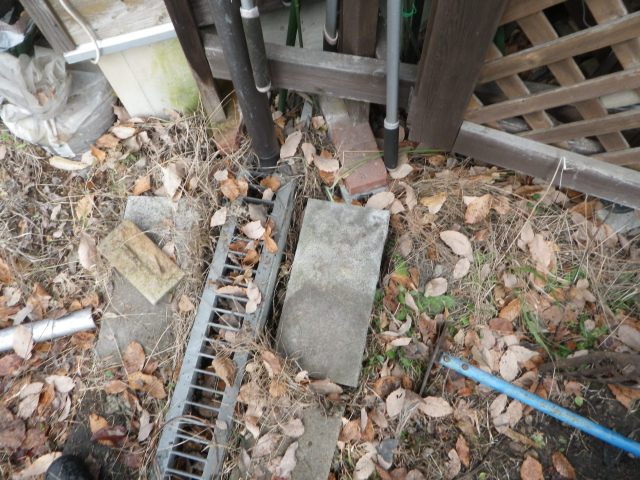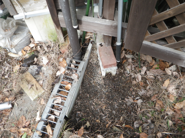 | 新パーゴラの支柱の基礎工事開始、まず雨水溝上部の清掃 |