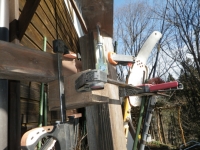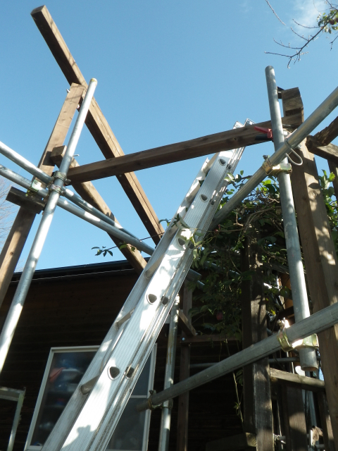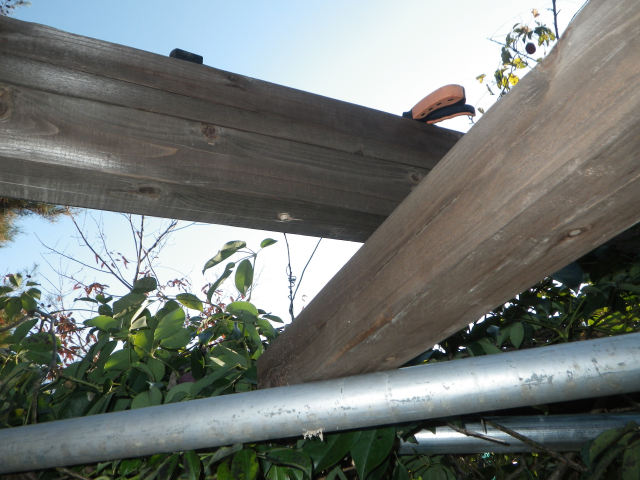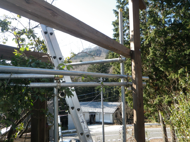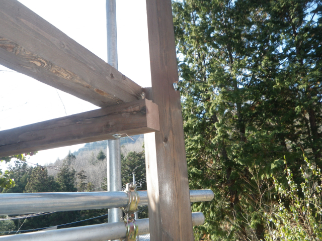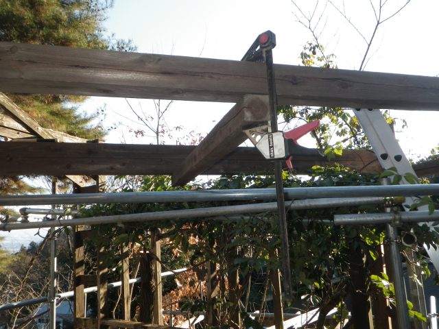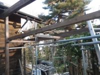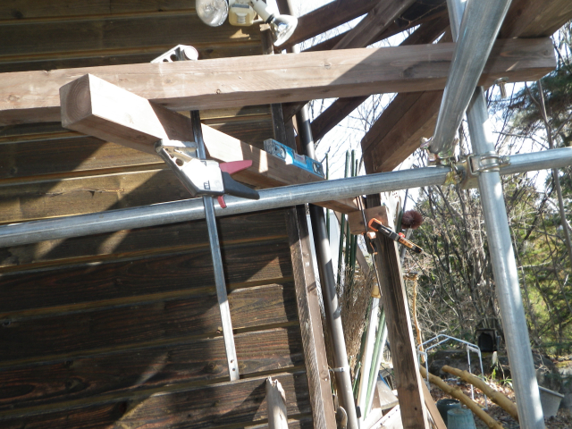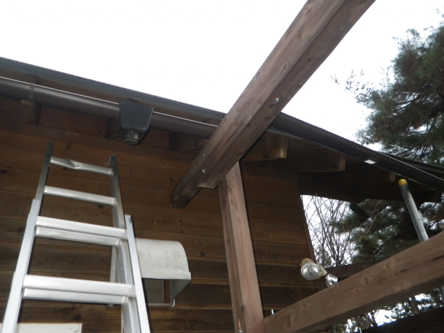 梁2-3間に桁を渡す続き、柱C固定のための桁、邪魔になる雨樋の迂回