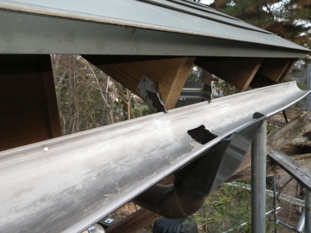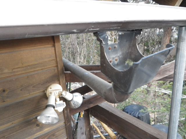 次は、垂木取付前に、邪魔になる雨樋の迂回