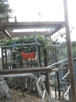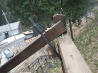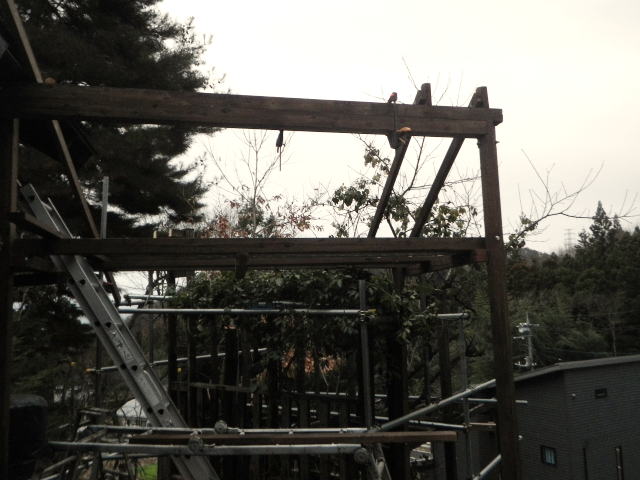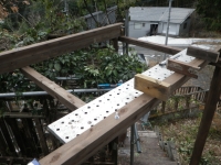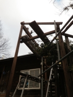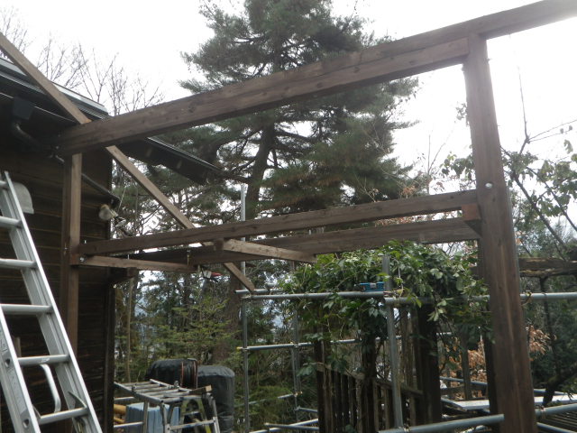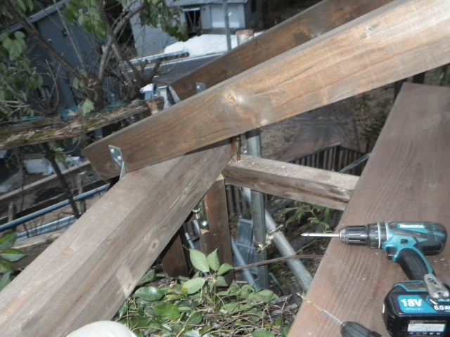 垂木は、屋根雪が落ちる屋根に近い部分は、30cm幅、その先は、通常の40cm幅にする