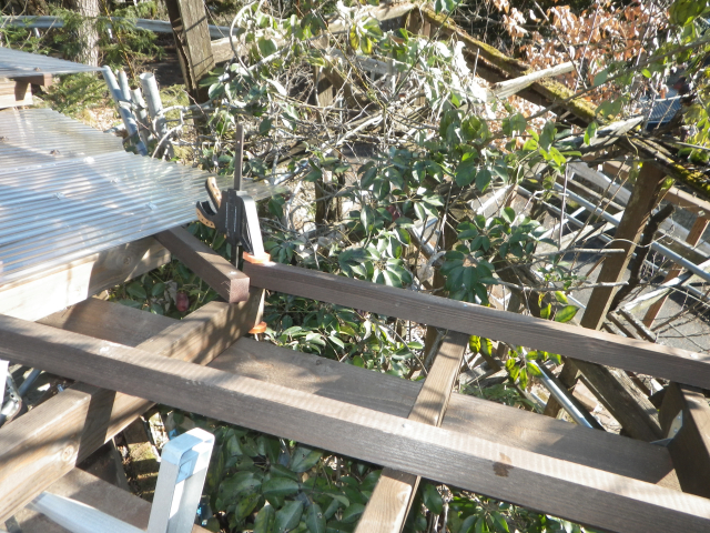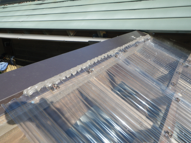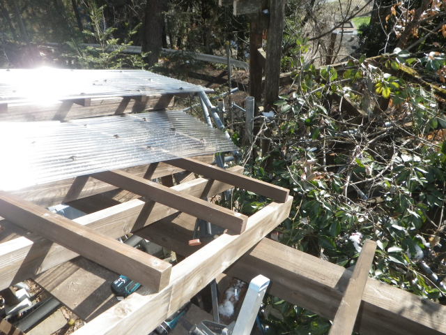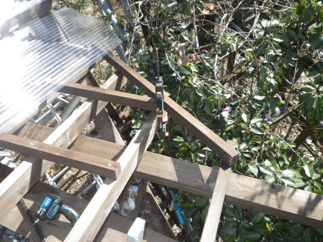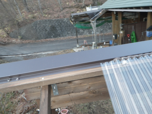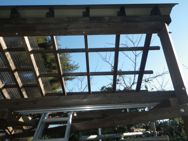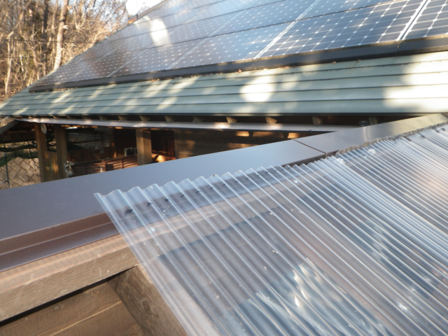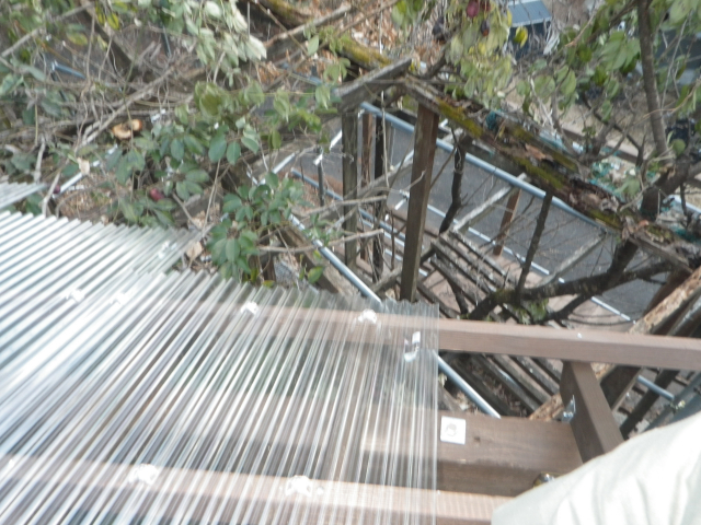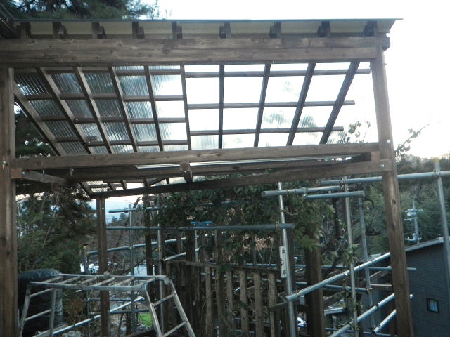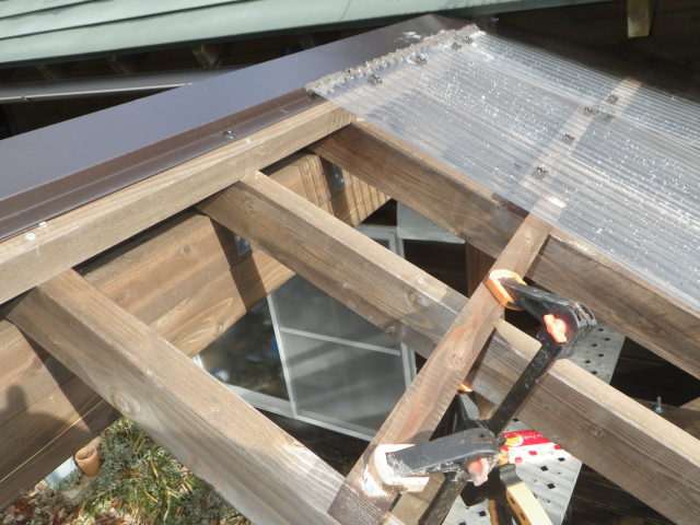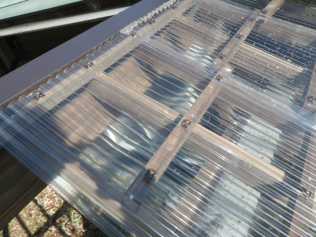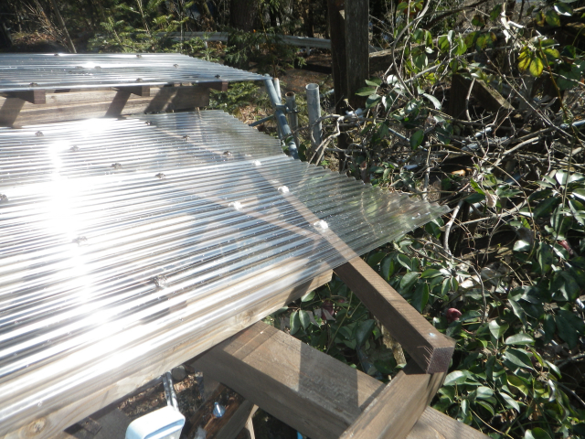 最上部の屋根のポリカ波板張りの続き