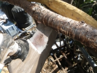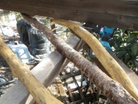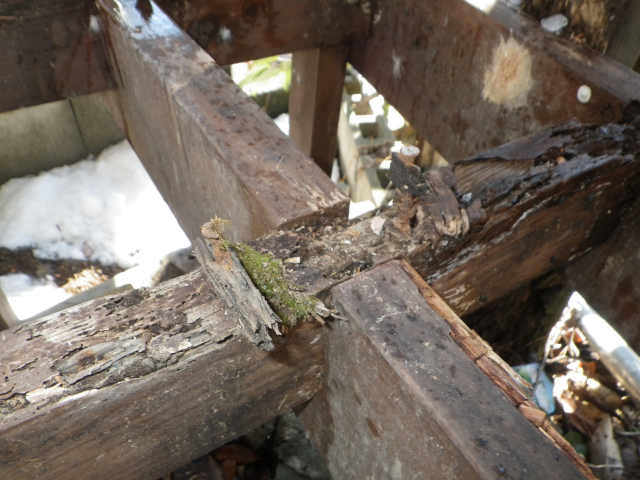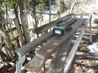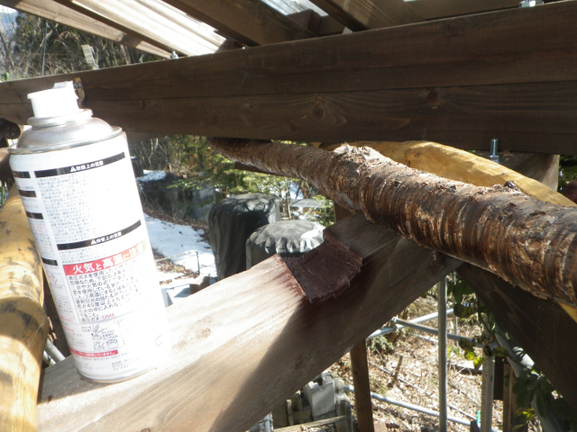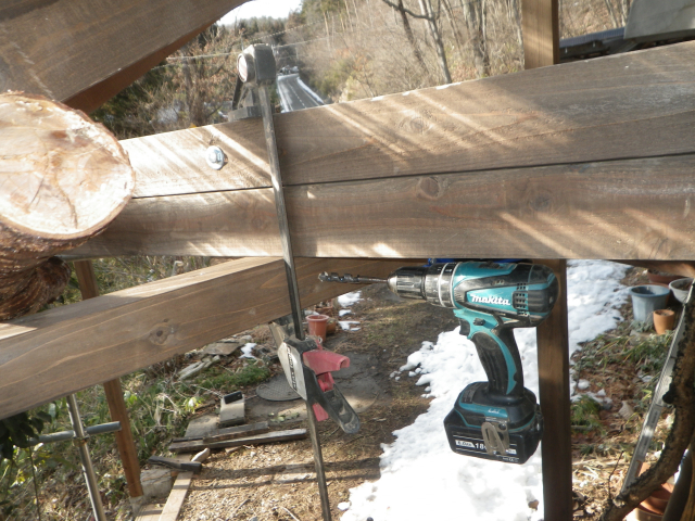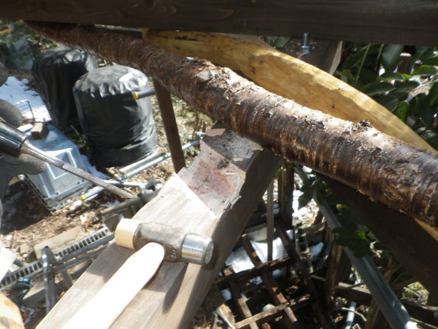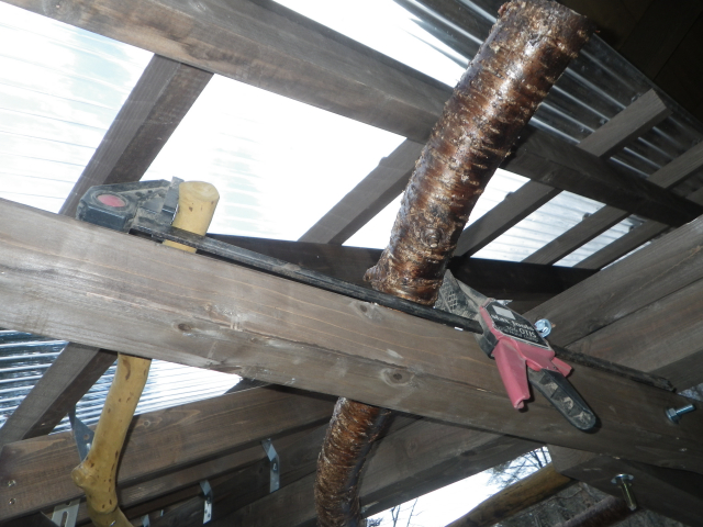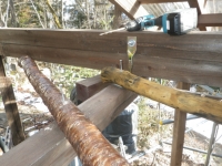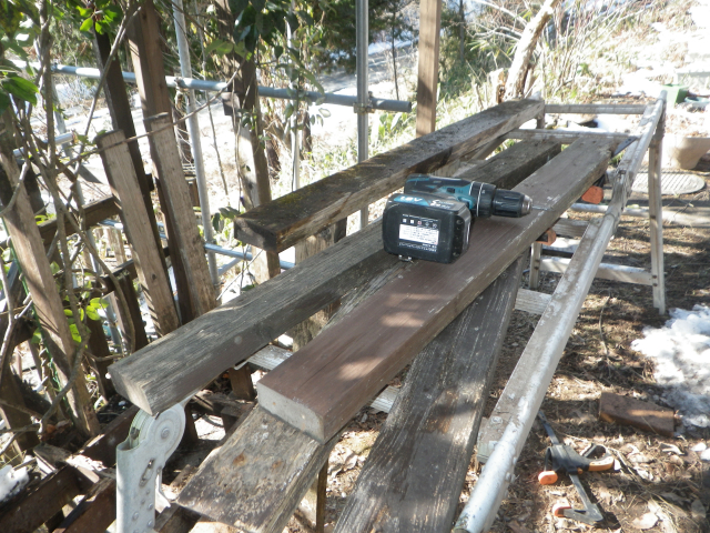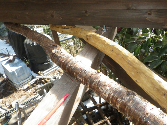 とりあえず、新パーゴラ設置の邪魔ものは解体したので、天然木のパーゴラ桁の設置