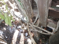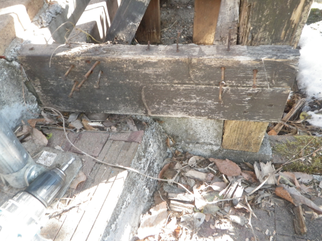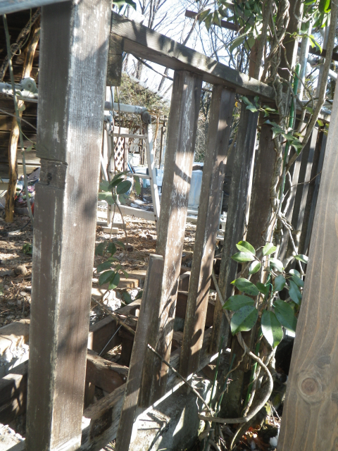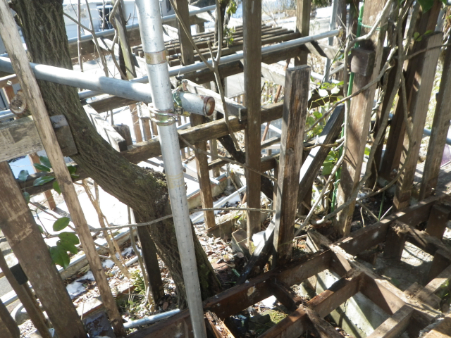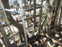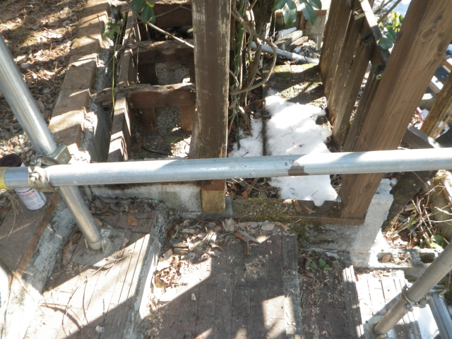 | 本日は、新パーゴラ設置の邪魔になる最上部デッキの柵等の解体から |