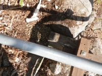 柱Fの位置は、当初は旧パーゴラの支柱位置を踏襲する予定だったけど、ここだとデッキ東端を屋根カバーできないので、デッキ道路側の東端と縦並びの位置に変更。