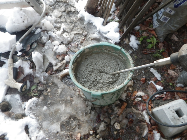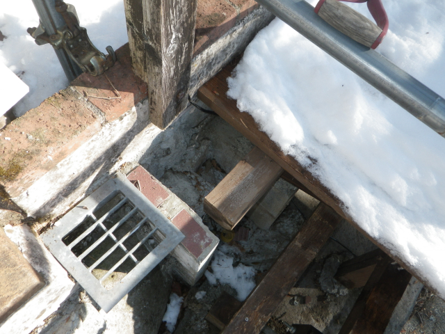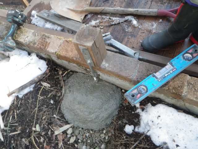 下段の道路側の梁を10cm下げ・桃の剪定・旧パーゴラ解体の続き、柱F・G・Hの基礎工事