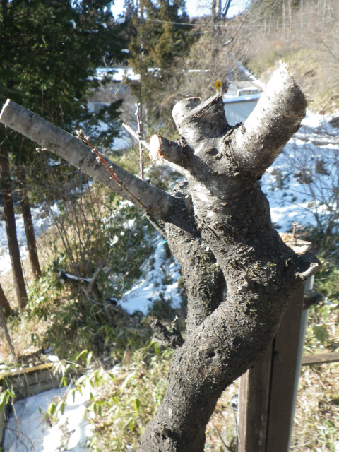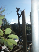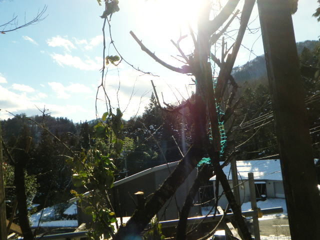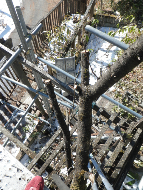 次に、予定している屋根を超えてしまう桃の枝の剪定