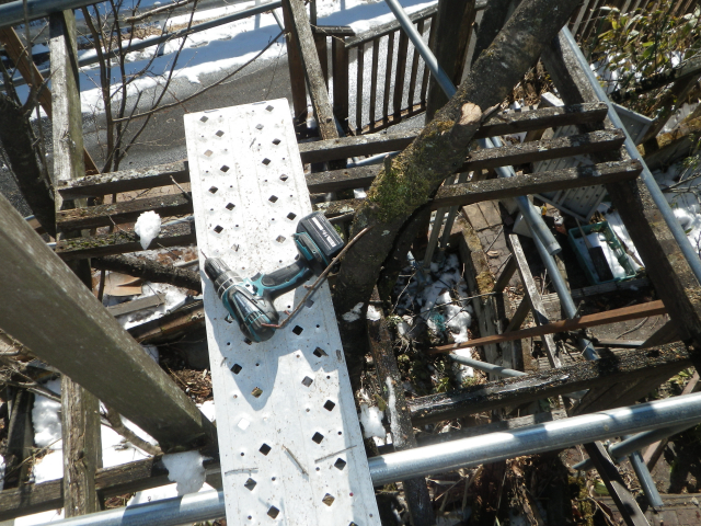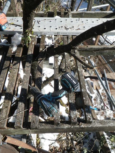 続いて、桃の剪定用の足場としてに残してあった旧パーゴラの解体