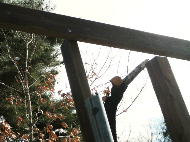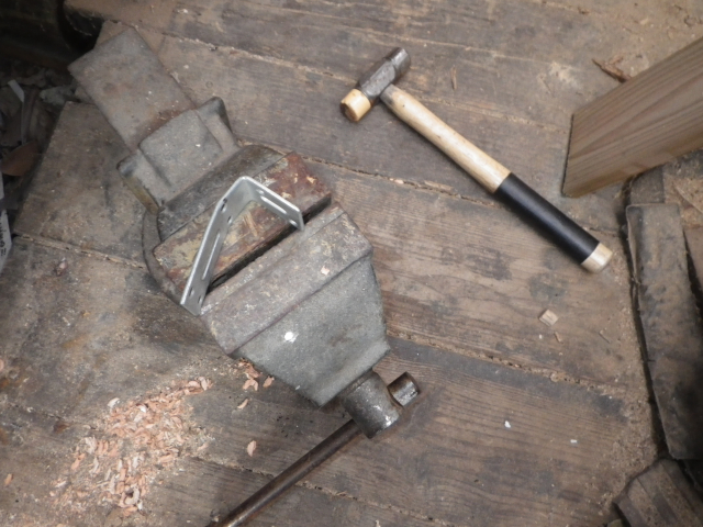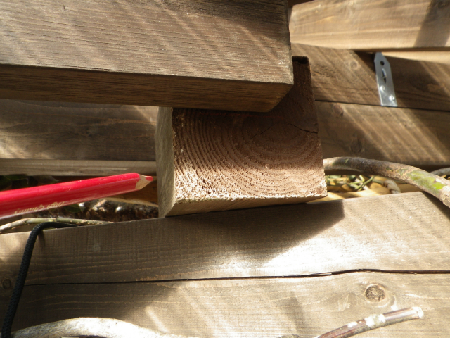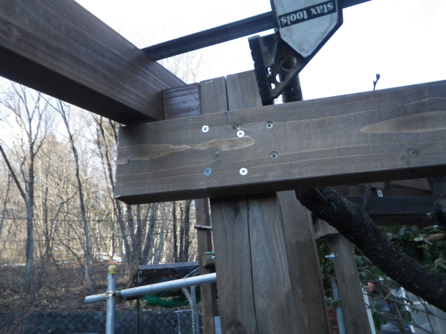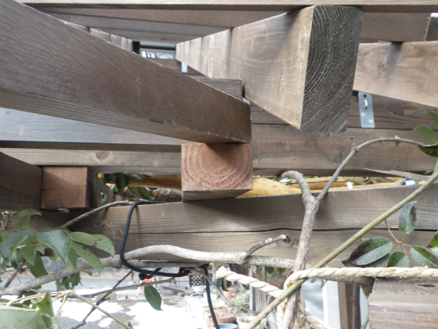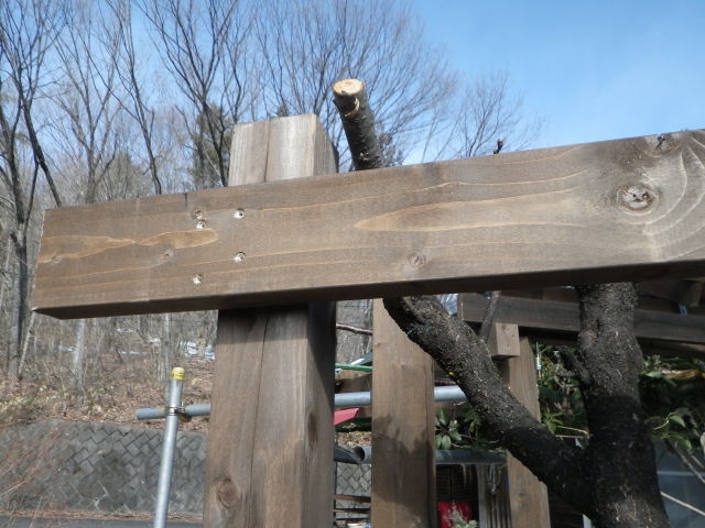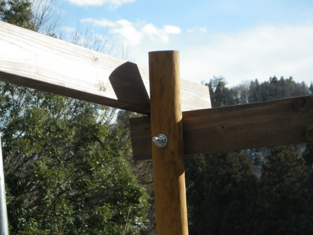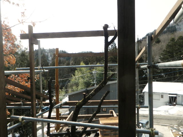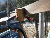 | 桃を囲う部屋の屋根の東西の垂木取付完了したので、中央の桁を位相させて付け直し |