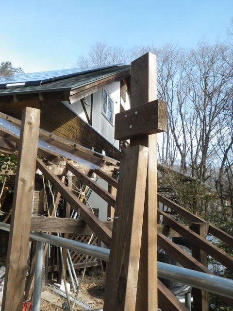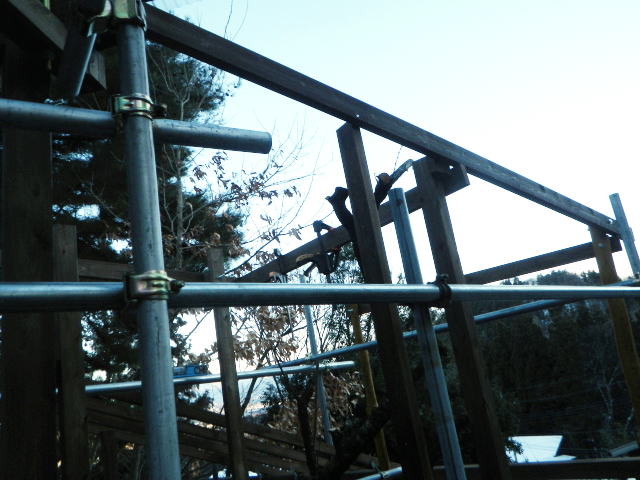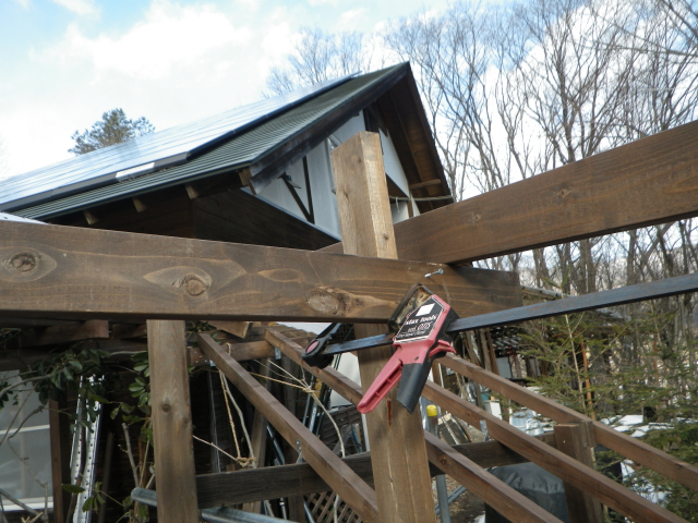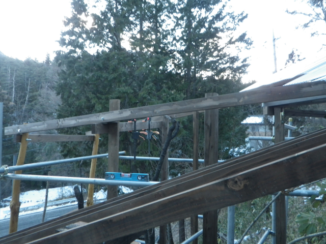 で、残りの垂木を付けるのに、先日取り付けた上部の桁では位相に宜しくないことが判明し、