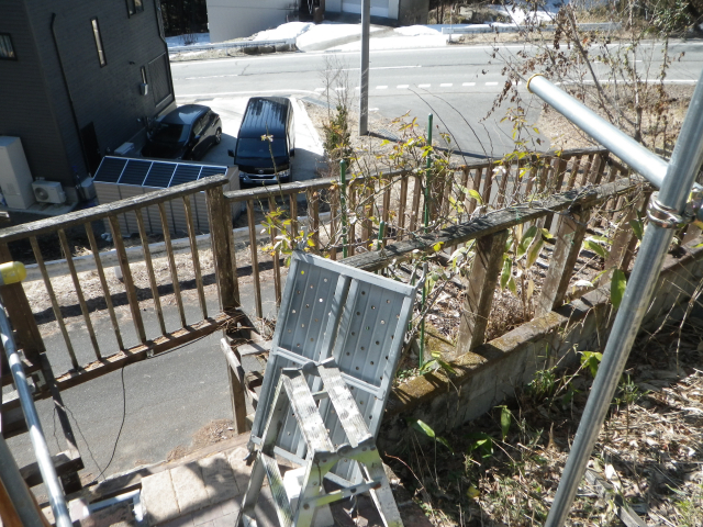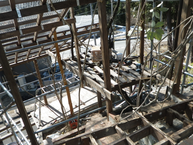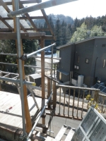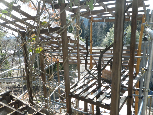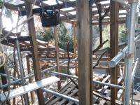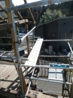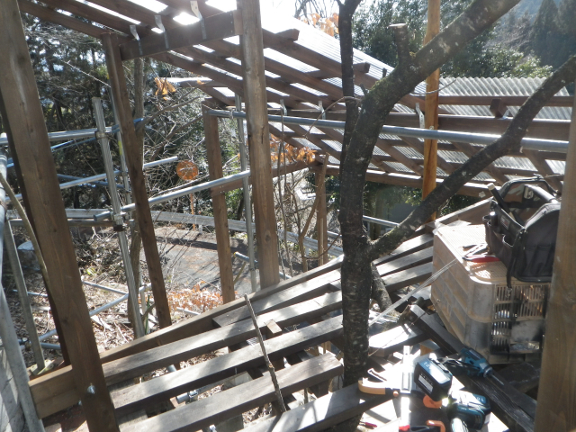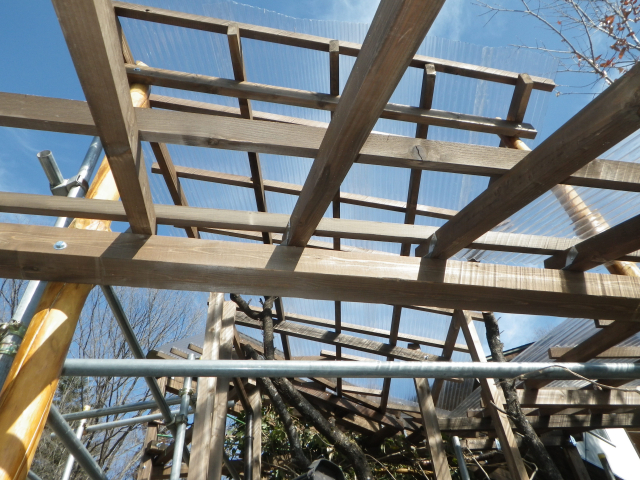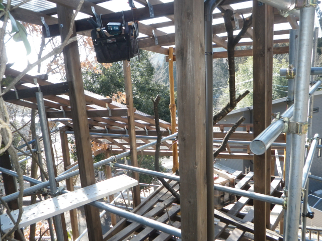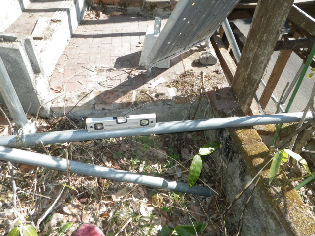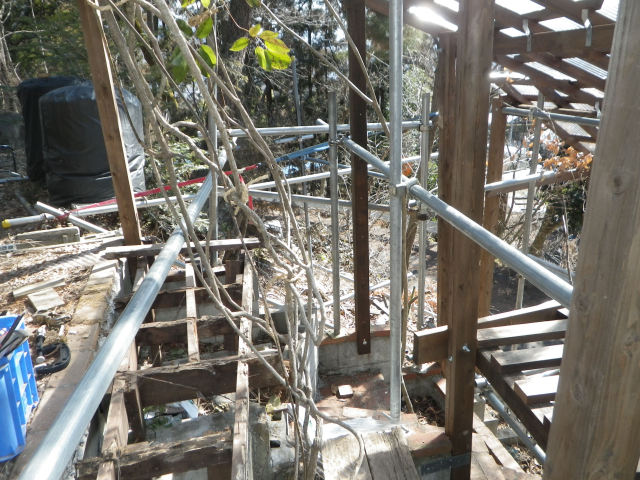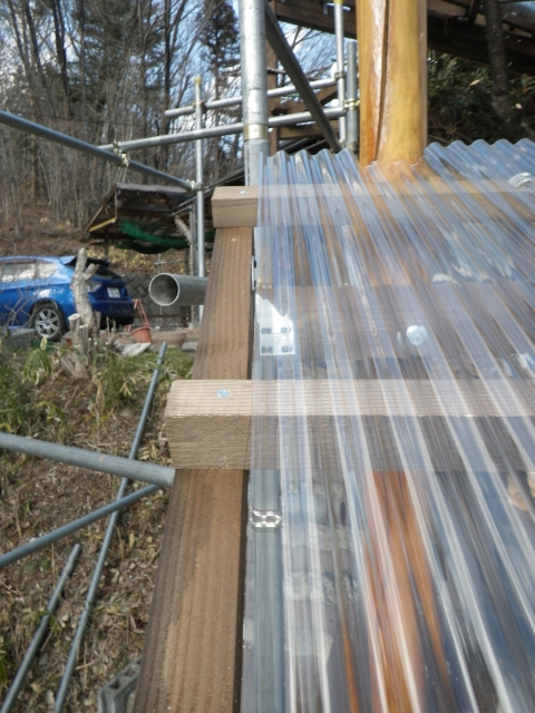 追加の足場組み終わって、下段の西側のポリカ波板張り