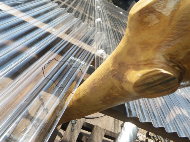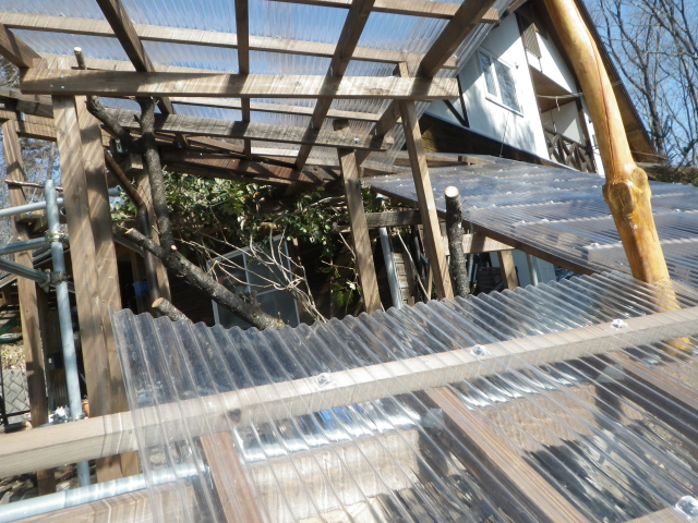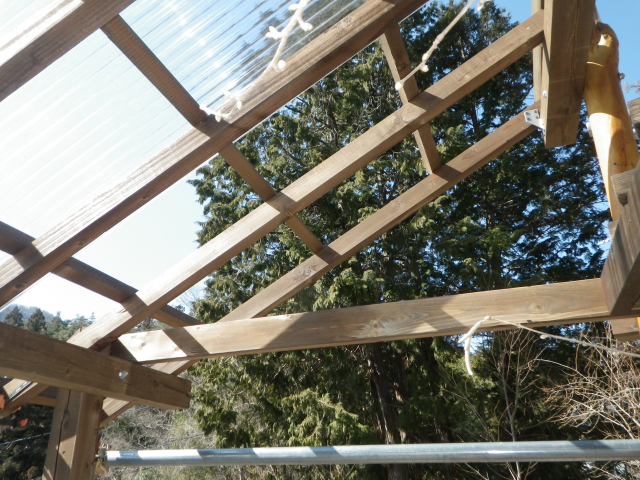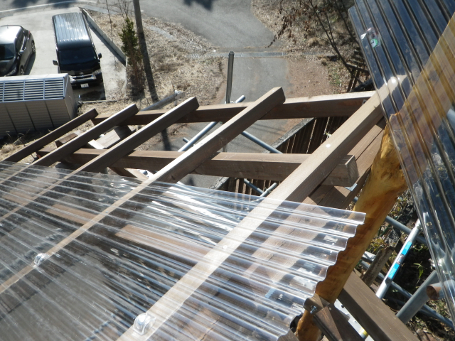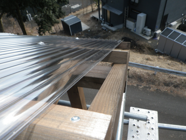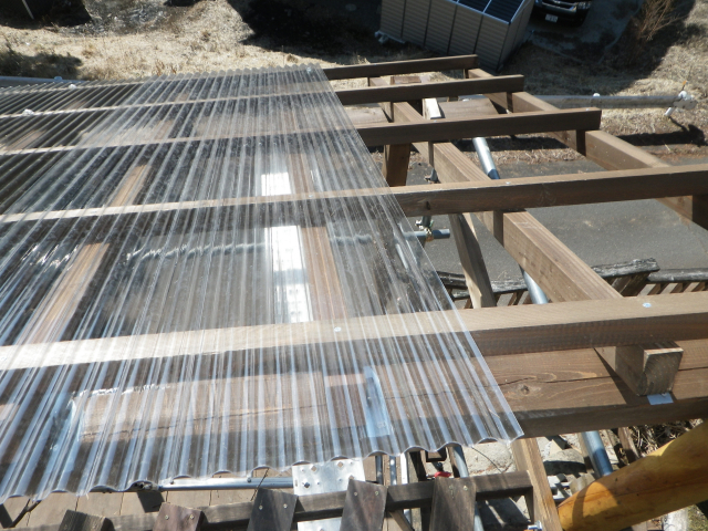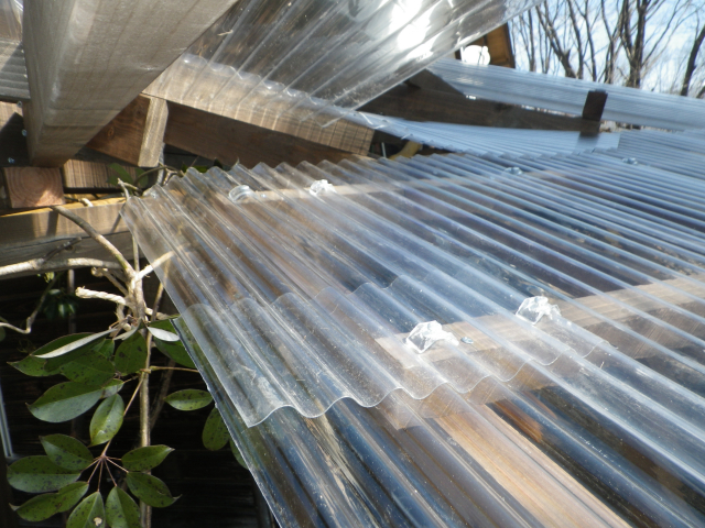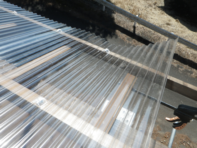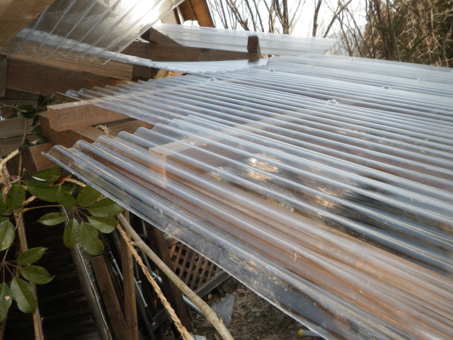 次は、下段の屋根の西側の残りのポリカ波板張り
