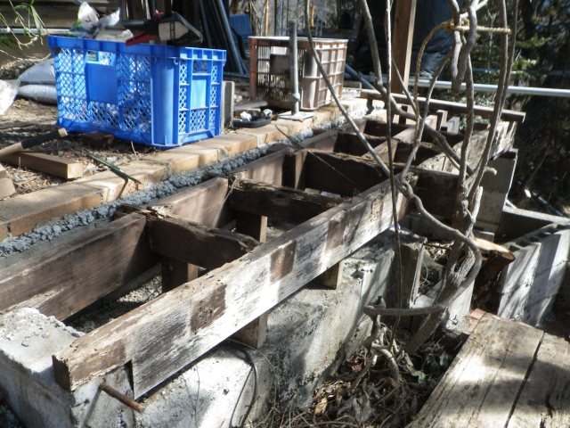 :半解体で終わっていた旧桃パーゴラ最上段のデッキの桁の解体