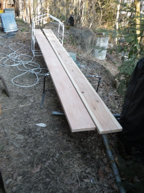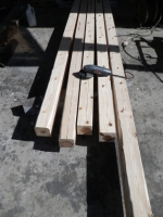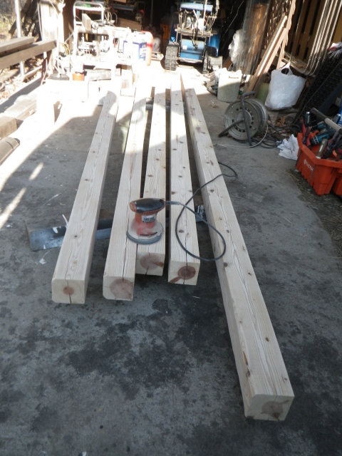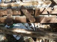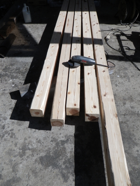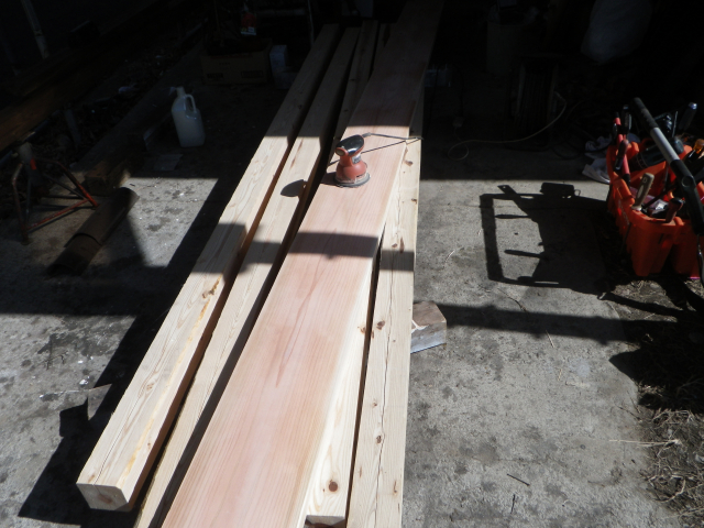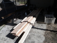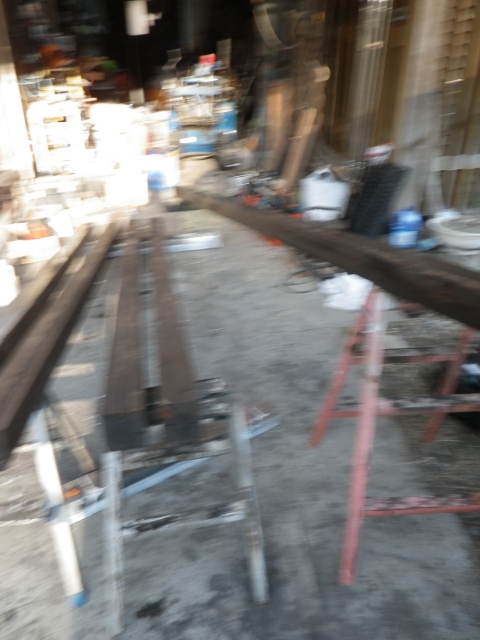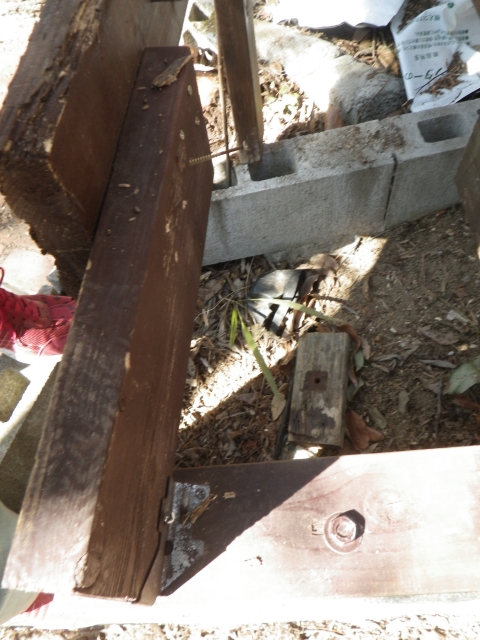 旧桃パーゴラ最上段のデッキの桁の解体、次の材の準備