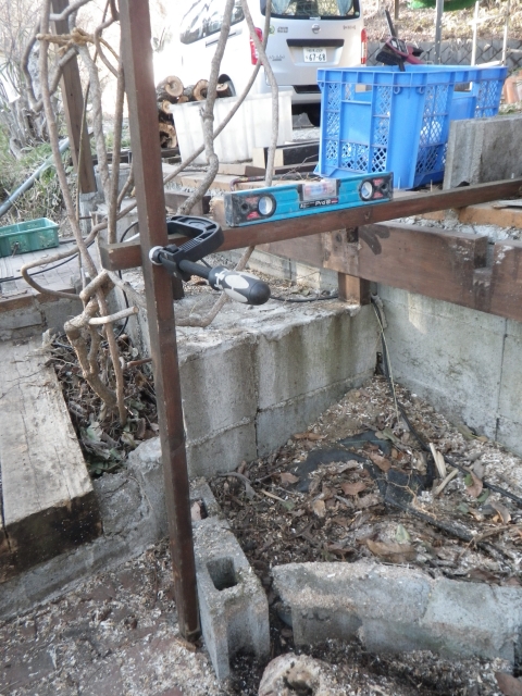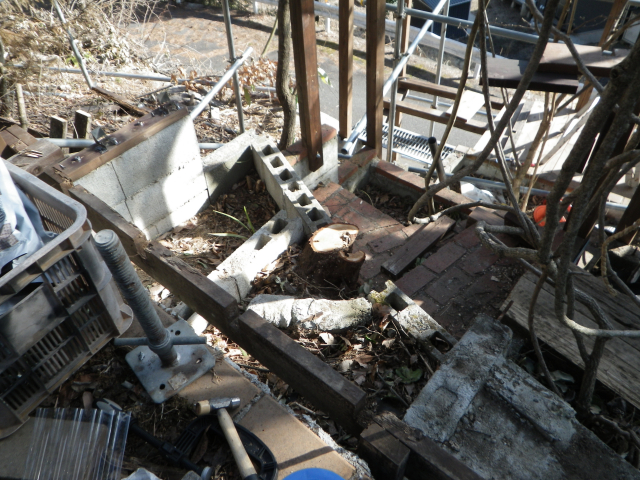 旧桃パーゴラ最上段のデッキの工事のday2