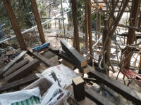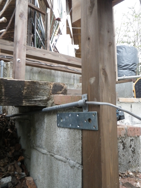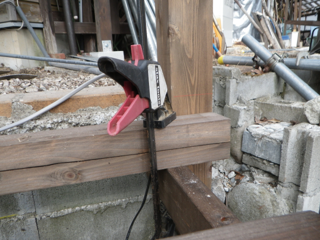 元々、照明用の12V配線を通していたので、その穴使ってVVFケーブル通す |