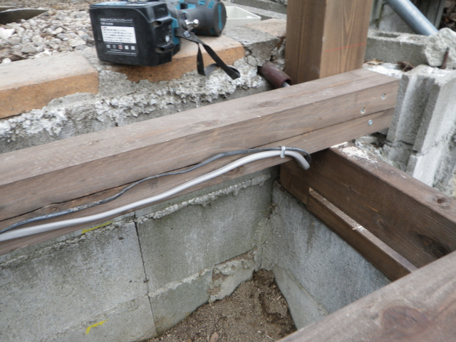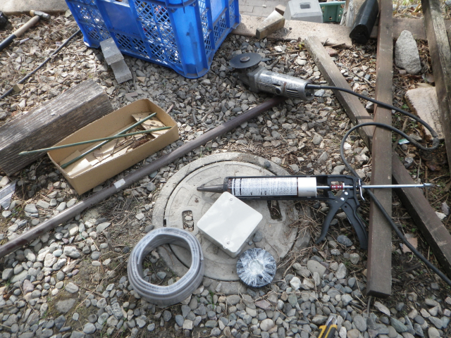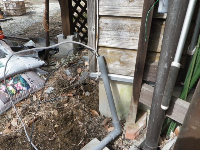古い枕木通路下をPV管設置してVVFケーブル通すんだが、PV管13mmと細いのを選んでしまったので、
