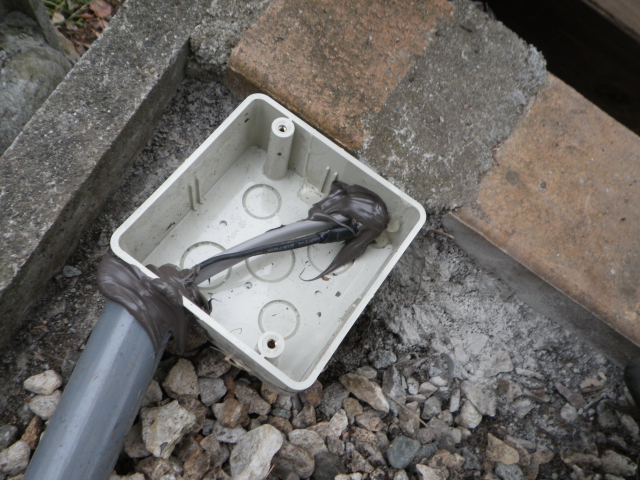 | 一応、後日のメンテを考慮して、ボックスを通す。(ここは屋根下なので、それほど雨は掛からないはず) |