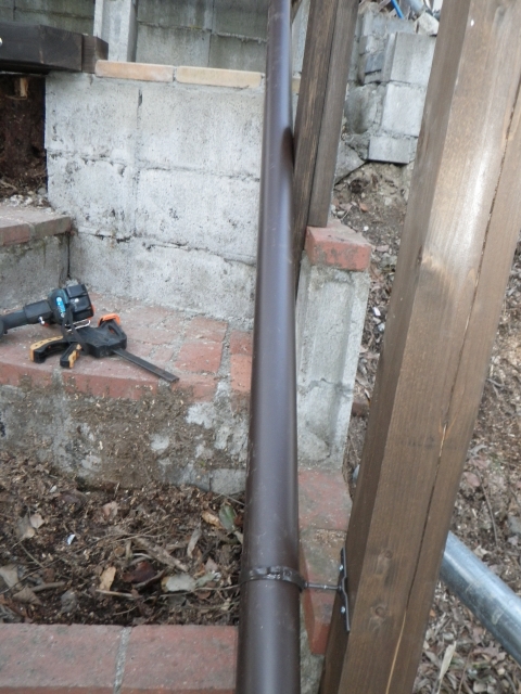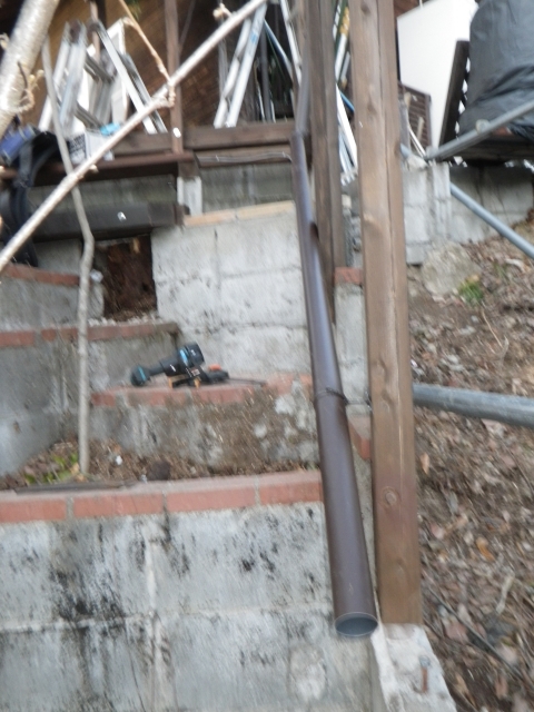 で、せっかく雨樋付けるなら、新花壇の灌漑に使えるように(^^) |