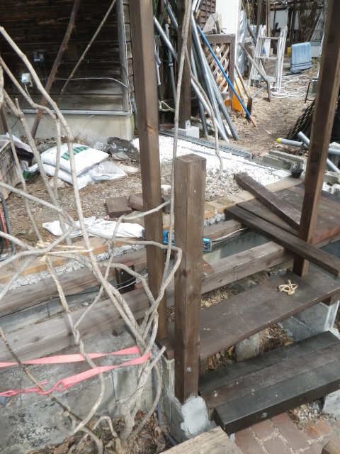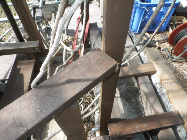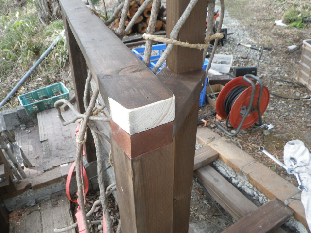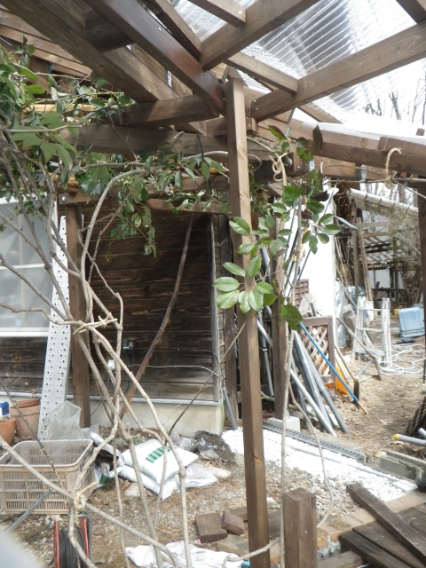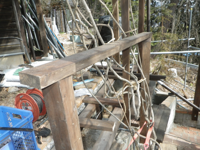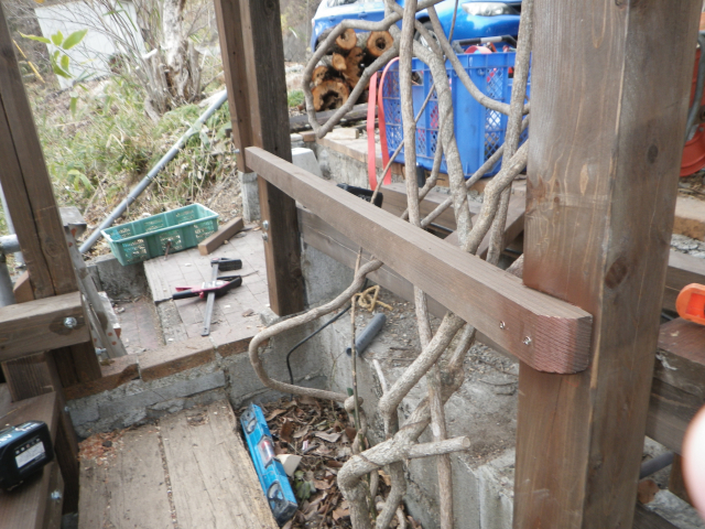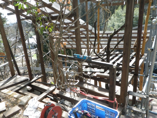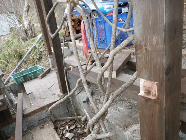 暗くなってきたので、大実ムベの幹柵は終わりにして