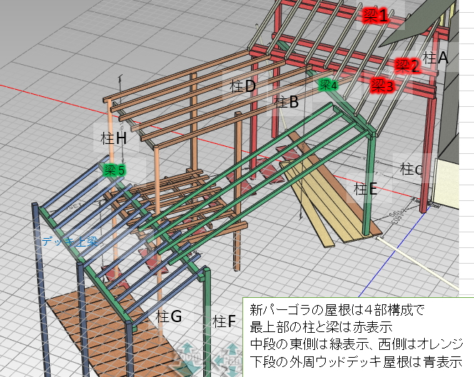 ・新パーゴラ+デッキの屋根は4部構成