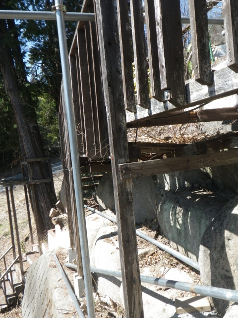 まず足場の設置。前工区で空いた単管を設置していく