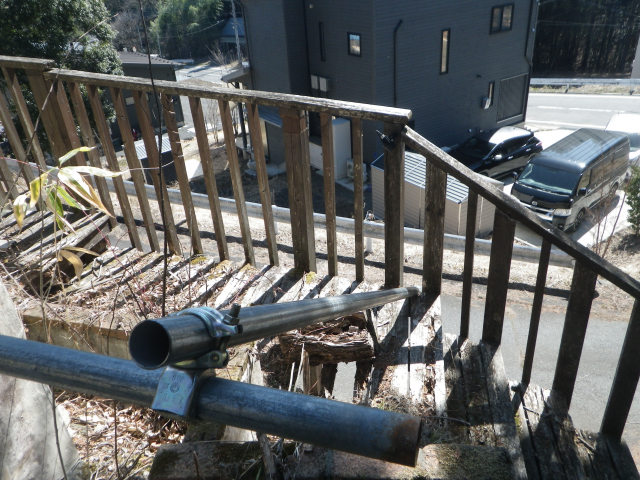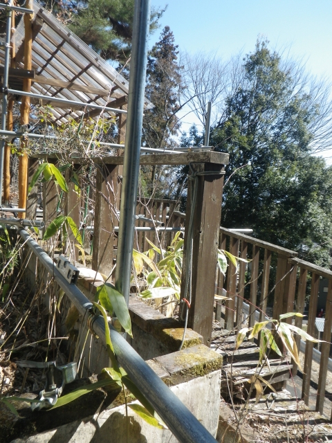 旧桃パーゴラ〜下段のデッキの工区が完了し、引き続き次のこの工区の作業開始