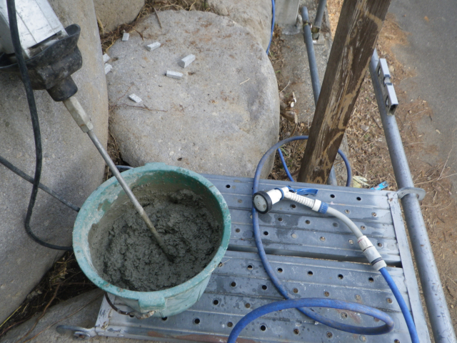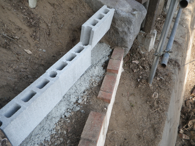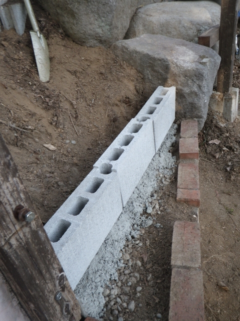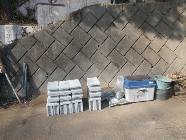 3/24 ブロック積むのは、少量づつセメント捏ねてって作業なので、