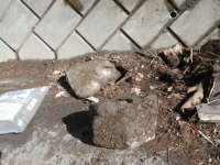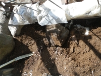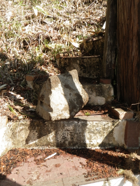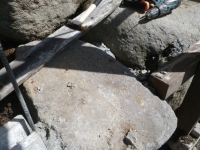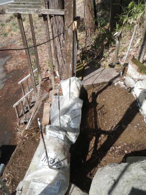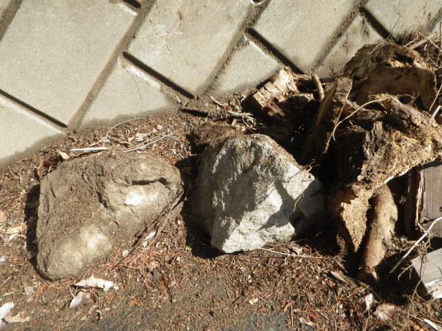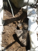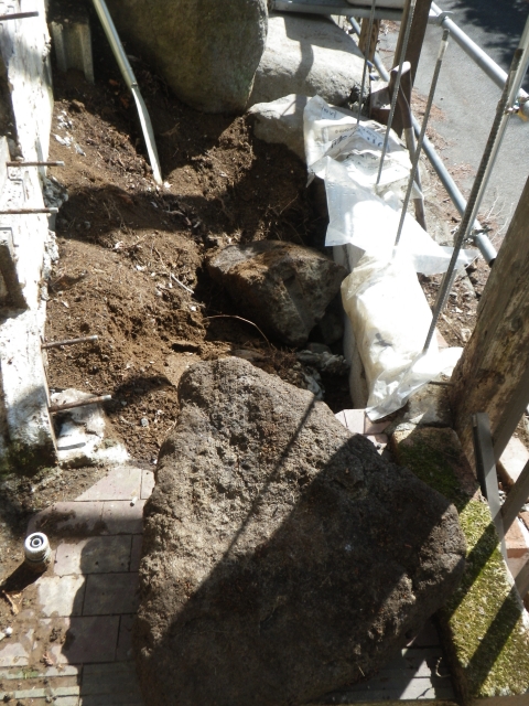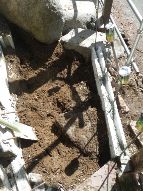 階段現場の埋めないといけないトコに、かつて出土した大きな石(2個)を置く。