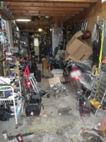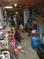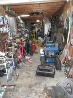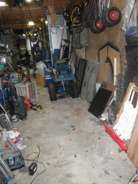 | 11/15 階段部屋工事も南東側の新木工作業場の工事も終り、あちこちに点在してるネジや金物や電源資材をまとめる+除雪機が出動できるようにする。 |