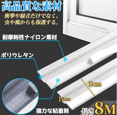 - 隙間テープサイズ:隙間テープ(長さ8 m、幅30mm)はナイロン(PE)とPUフォームから作られており、環境に優しく、防水で異臭がありません。色:ホワイト。ドア隙間テープセットにははさみが付属しており、裁断して使用することを提供します(購入する前に、ご希望に応えるためにドアや窓の長さを測定することを強くお勧めします)