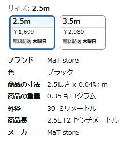 - 【商品詳細】サイズ:外径39mm、内径32 mm、長さ:約2.5m、重量:350g、素材:エチレン酢酸ビニル、色:ブラック、パッケージ内容:本体×1本