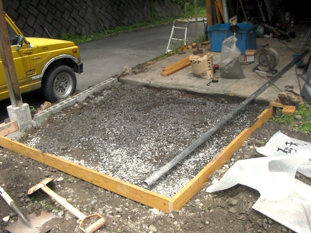 当初、5cm厚で計算してたけど、結局10cm厚になったので、コンクリは倍量必要となった