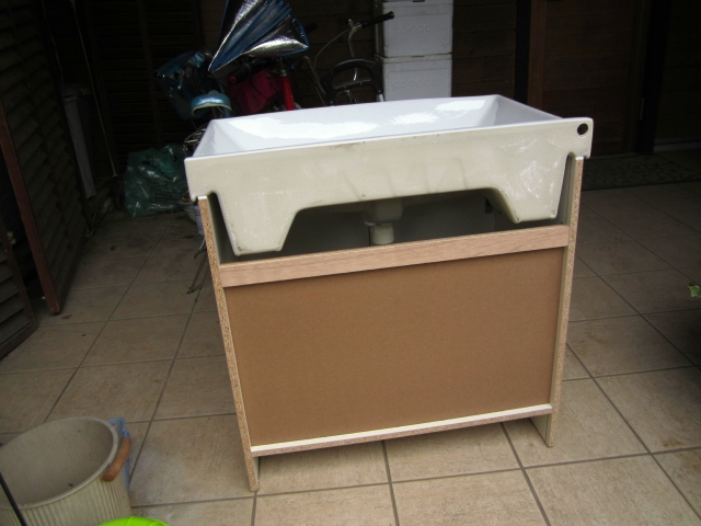 新洗面台のカット部採寸 |