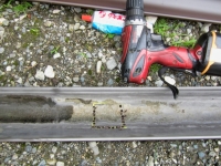 不足分だけ古いのを使うので、綺麗なトコをカット後に、穴を開け直し |