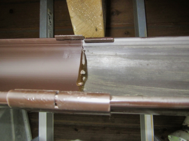 最近、大雨時の玄関の雨樋の中央部分の雨だれが酷い。