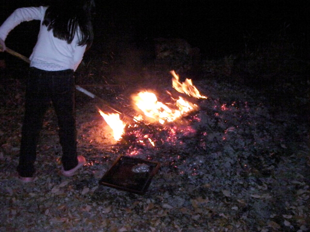 11/22(土) 俺はハイエースからキャラバンへの移植作業だが、子供達は落ち葉焚き。