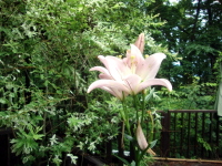2017/7/2(日) の庭の様子。ショウブ・ギボウシ・ザクロが開花。ブルーベリーが成ってきた。
