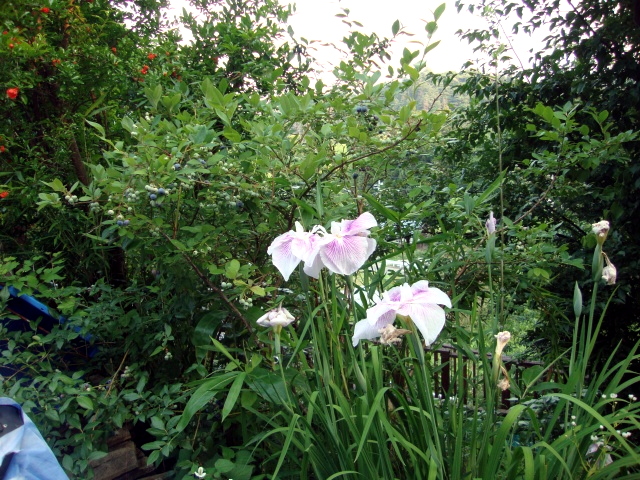 | 2017/7/9(日) の庭の様子。ショウブ・ブルーベリーの様子。カシスの収穫。ラジコンの鳥。 |