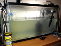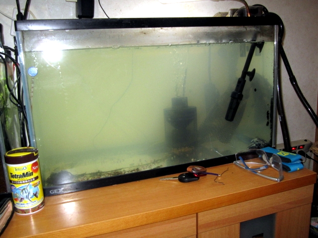 も効果無く、いまだプレコの水槽の白濁直らず、再び、水の半替え。