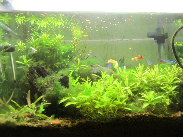 、ワイルドフォーム・ミックスグッピー(3ペア)が出産していたらしく、小さいのが一杯