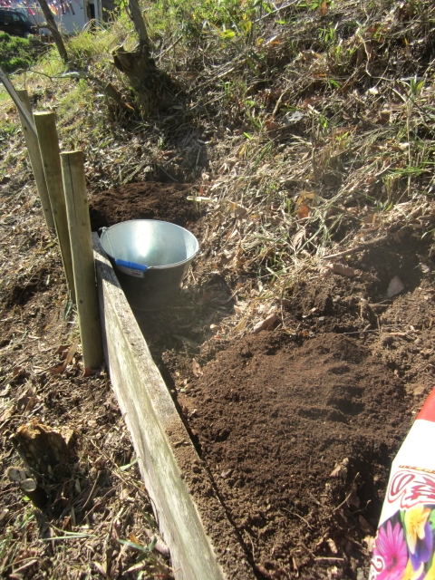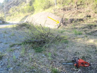 未開拓の南面の電柱寄りの下方に植えることにし、先日草木を伐採済。