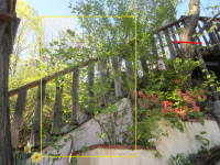 | 丸は↑の遠景、矢印は、サトウカエデ |
