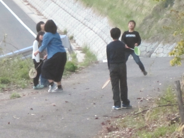 | 【16:41】子供達は、西側の道でバドミントン中 |