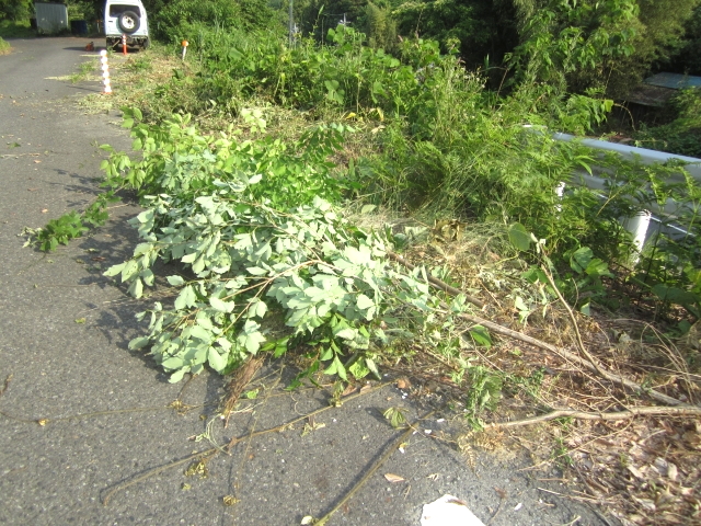 6/26(木) 庭の様子、大工仕事の合間に少しコサ切りした前後など