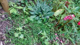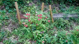 9/1(日) 南階段脇のカツラ・オオバクロモジ、下のツルアジサイ