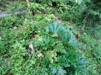 9/8(日) 南階段脇のオオバクロモジ、法面下のサトウカエデ、南法面柵のズッキーニとホウセンカなどの様子。