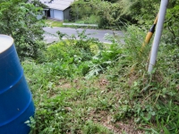 【16:04】家の西側の倉庫脇と後ろの法面の草刈